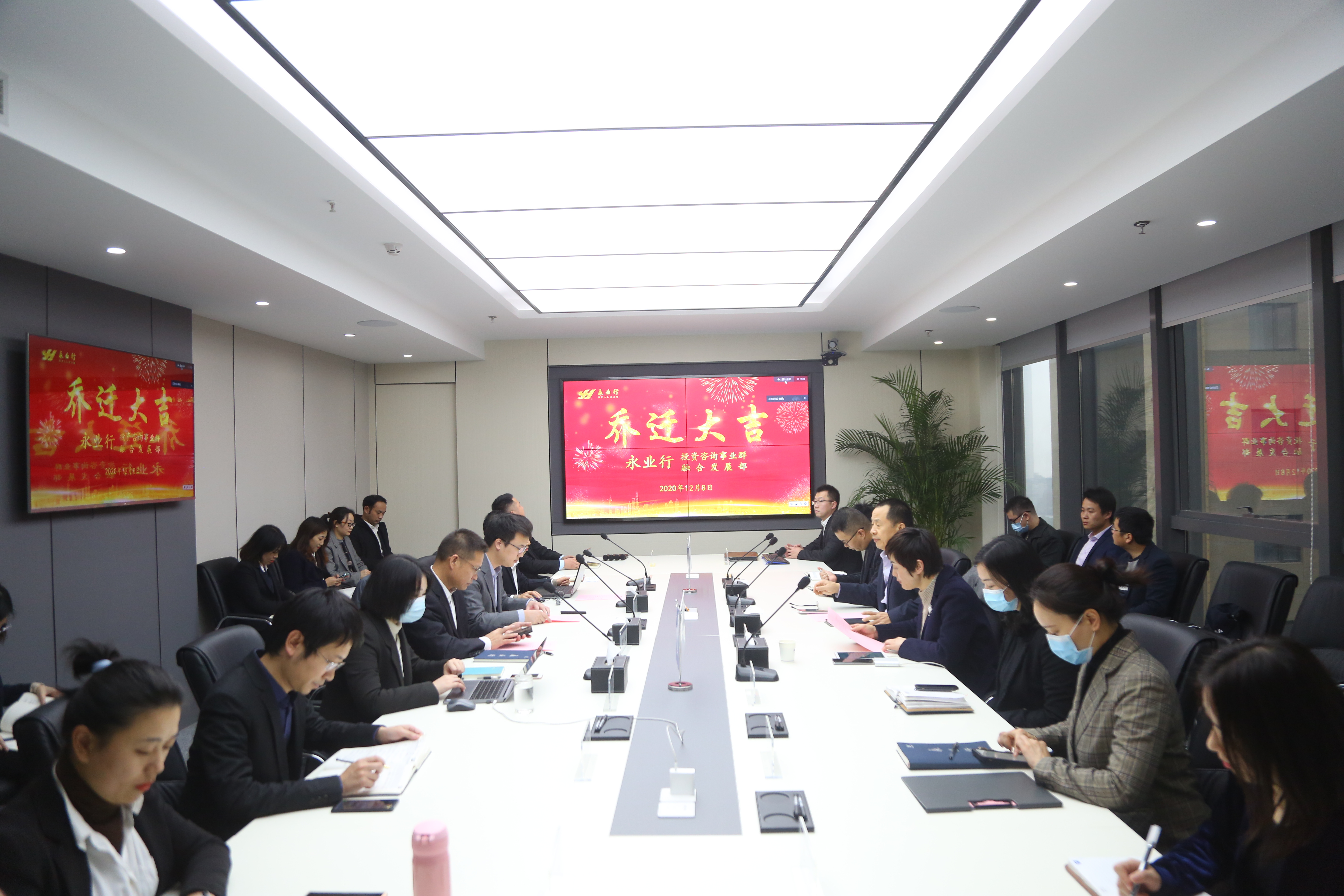 2020年12月8日,永业行董事长、总裁潘世炳,执行总裁王琴,职能中心相关代表一行赴投资咨询事业群、融合发展部开展经营管理和改革推进情况进行调研。副总裁兼投资咨询群总经理文云波、常务副总经理裴新桃、融合发展部总经理刘宇,投资咨询事业群、融合发展部管理团队成员、骨干员工代表参加座谈。