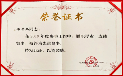 2020年7月,中共湖北省政府机关党组印发《关于表彰2019年度先进参事和参事工作单项奖获奖参事的通报》,省政府参事、永业行董事长潘世炳荣获先进参事、参政建议一等奖。