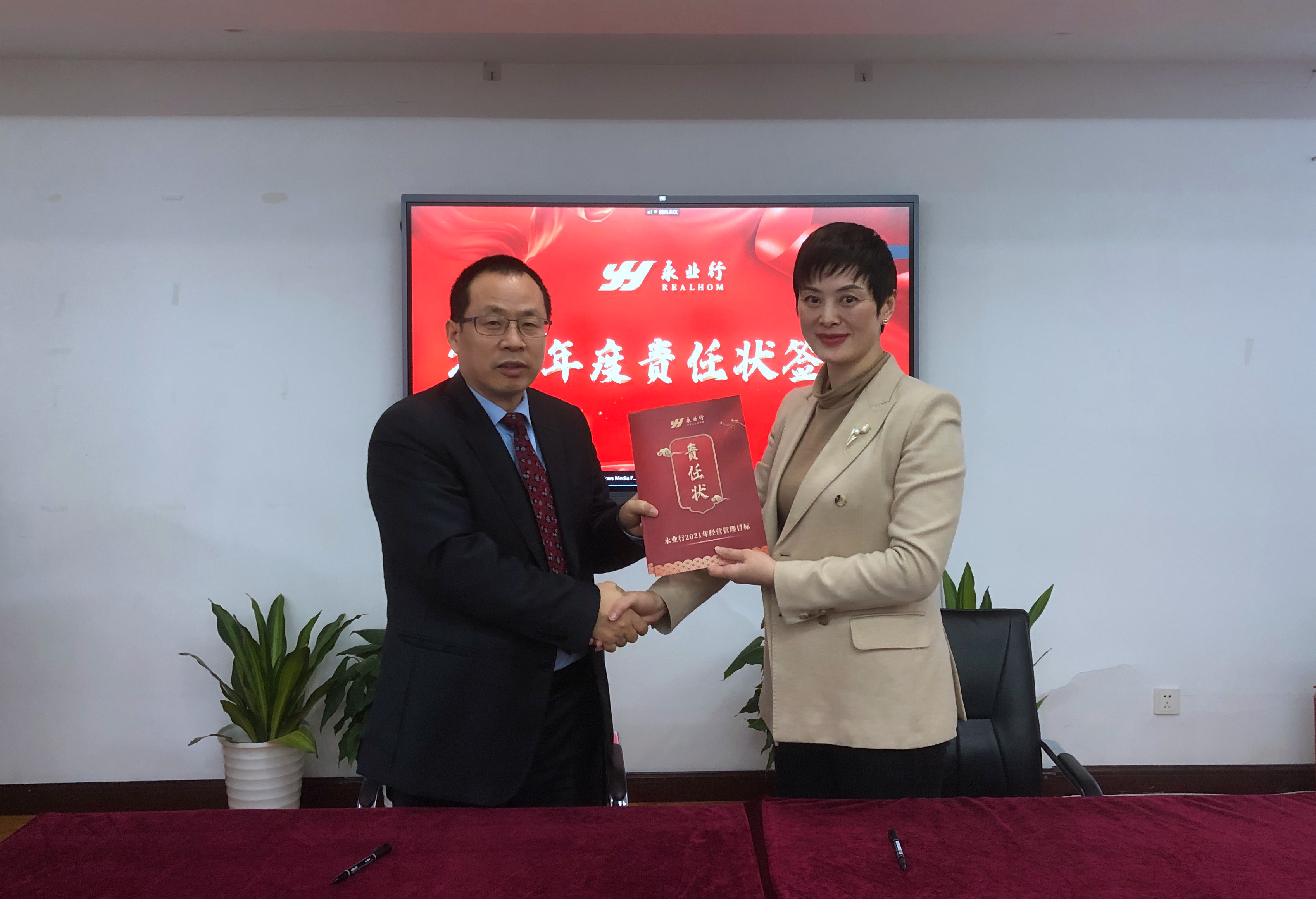 会上,潘世炳、王琴与高管及部门负责人签订了《2021年经营管理目标责任状》。吴学锋宣读了年度晋升、任命名单,文云波宣读了表彰决定,对永业行各部门2020年度涌现出的技术、市场、品牌、研发等优胜部门及个人,优秀新人、先进工作者和标兵进行表彰和奖励。