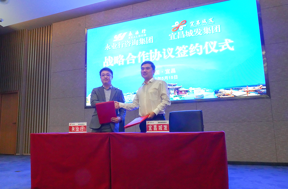 2022年5月15日,永业行集团与宜昌城发集团在宜昌举行战略合作协议签约仪式。宜昌城发集团党委书记、董事长殷俊,党委副书记、总经理徐强,党委委员、纪委书记刘仁,永业行副总裁文云波,投资咨询事业群全过程咨询事业部总经理杨凤等出席签约仪式。