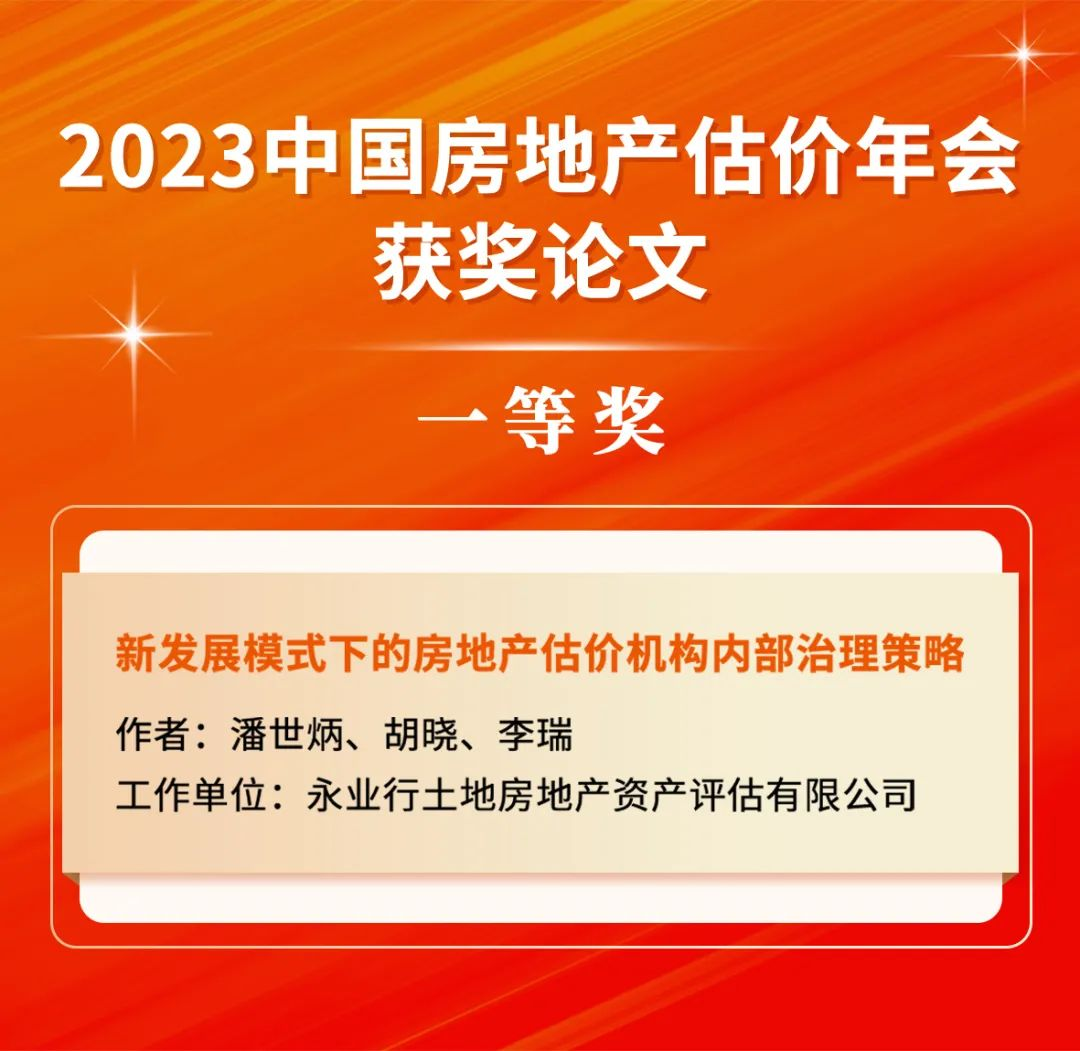 永业行荣获2023中国房地产估价年会论文一等奖