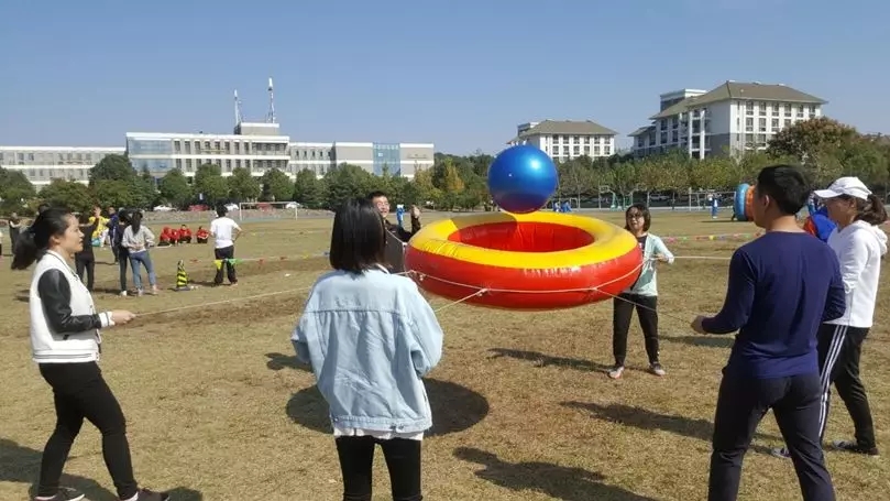 本次运动会分为团体趣味项目和个人竞技项目。团体趣味分为陆地龙舟、心心相印、齐心协力、奥运向前冲等六个项目;个人竞技项目分别有撸起袖子加油干、袋鼠跳、回味童年滚铁环三个项目。当大会宣布运动比赛正式开始,整个赛场顿时沸腾起来,加油助威声此起彼伏,络绎不绝。