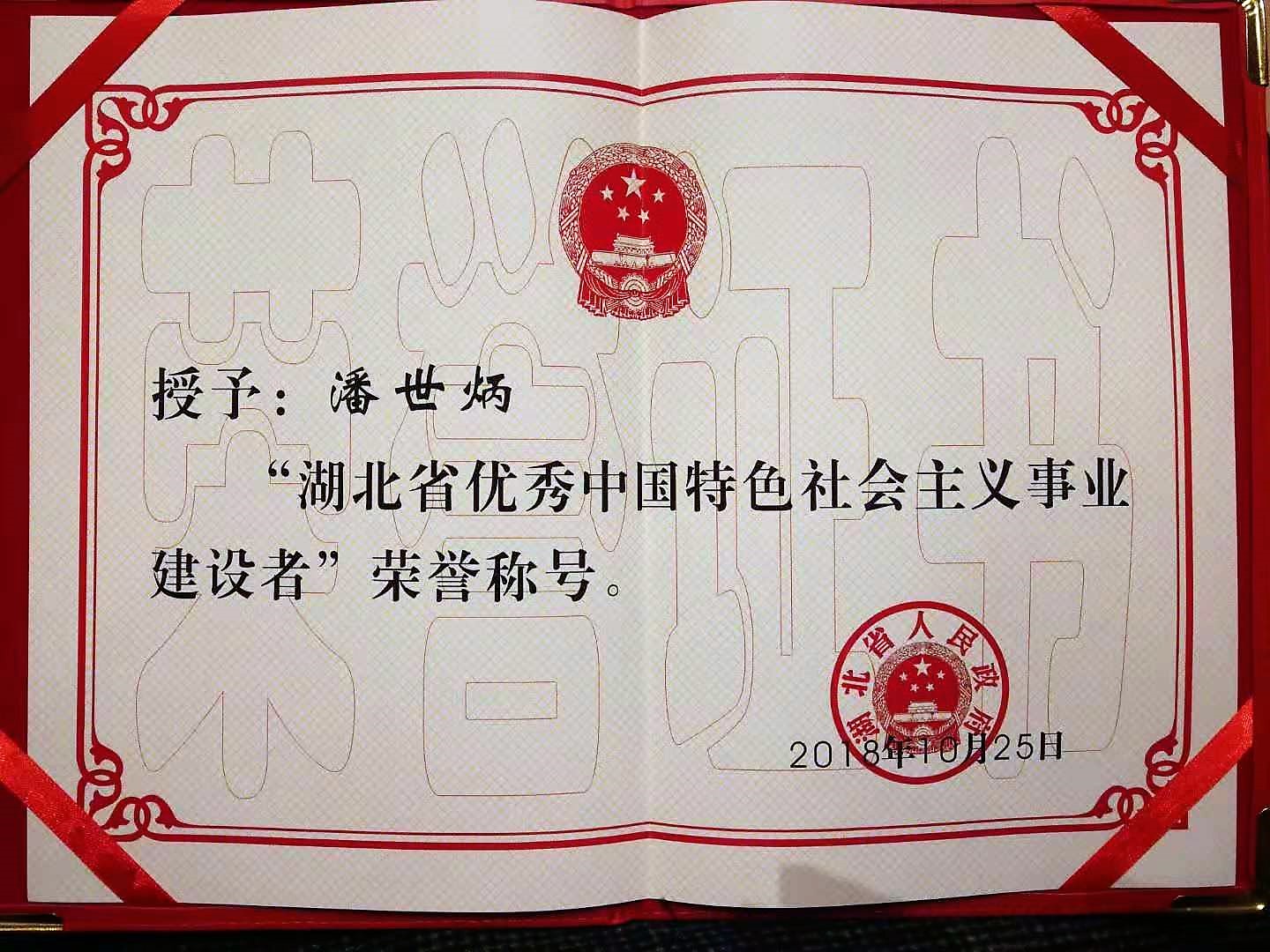 永业行潘世炳获省政府表彰为“湖北省优秀中国特色社会主义事业建设者”