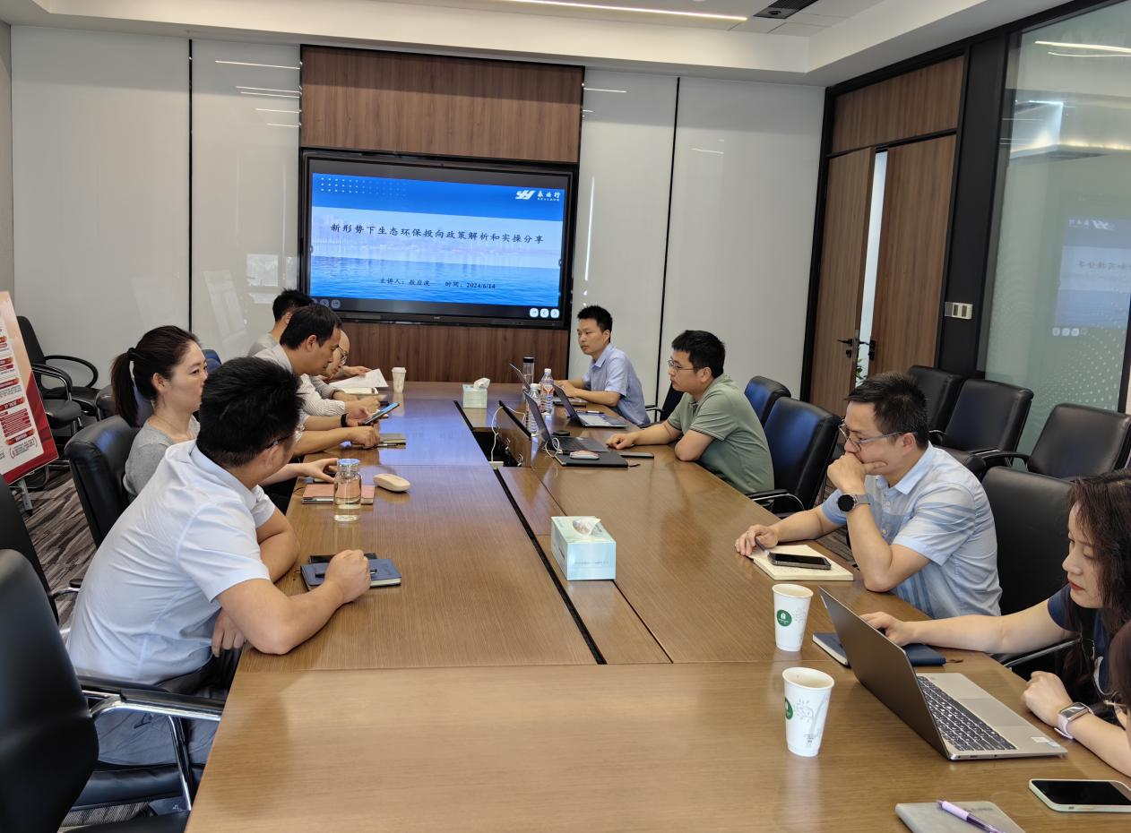 6月14日,武汉光谷环保科技股份有限公司(以下简称光谷环保)组织召开东湖高新集团环保科技板块“争资金、谋项目”培训交流会,永业行投资金融产业链工程咨询事业部执行总经理敖应波受邀作“新形势下生态环保投向政策解析和实操分享”专题培训交流,光谷环保水务事业部总经理王松出席会议。