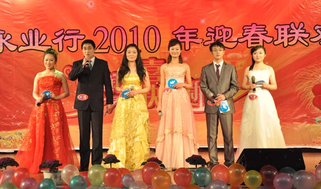 晚会由张璐、文云波、吴梦梦、曾莎莎、薛光伟、张欣鑫6位主持人共同主持,公司有关领导担任节目评委。当身着华服的主持人靓丽登台,掌声、欢呼声让现场变成一片热闹的海洋,晚会随即在热烈的气氛中拉开帷幕。不动产部员工跳起了舞蹈《红红的日子》,赛博能员工唱起了歌曲《原来你也在这里》,黄冈分部员工演绎了小品《踏雪寻梅》,襄樊分部员工表演了相声《我开始努力了》,孝感分部员工带来了诗朗诵《腾飞吧,永业行》等等,还有武汉音乐学院老师等为大家献上歌舞节目现场助兴,董事长方国成的有奖猜谜、征联,及钻杆等游戏活动穿插其中,也为晚会增色不少。
